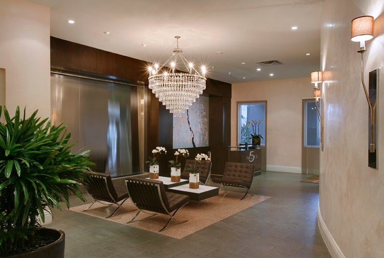 5 Palms is a luxury 10-story high-rise in Downtown Boca Raton. Built in 2009, 5 Palms condos offer luxury finishes including marble and porcelain tile floors, hurricane impact-resistant glass, luxurious bathrooms, walk-in closets, high ceilings, and gourmet kitchens with granite counters, stainless steel appliances, and European cabinetry. Spacious balconies overlook the city of Boca Raton and a select few units have ocean views. 5 Palms condo amenities include an outdoor swimming pool and front desk attendant as well as covered parking.