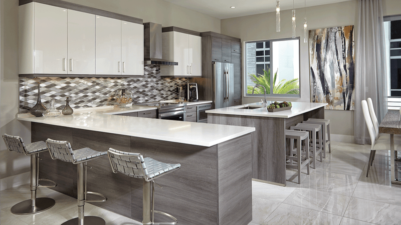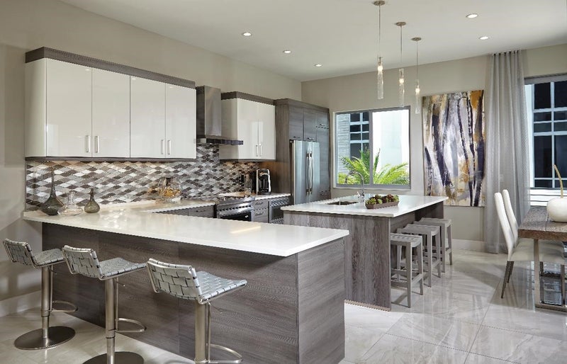 Moderne Boca Townhomes are unlike anything seen in Boca Raton before now. With box-like, contemporary exteriors, these properties look like something you would find in South Beach or even Fort Lauderdale. The interiors of Moderne Boca feature high-end porcelain tile floors and carpet in the bedrooms, hurricane impact-resistant glass, concrete block (CBS) construction, and top-of-the-line Italian cabinetry in the kitchens and bathrooms with Quartz counters and stainless steel appliances. Learn more about Moderne Boca Townhomes features and amenities.
