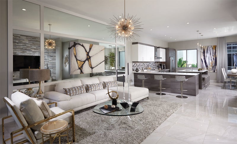 Moderne Boca's Plan One offers two bedrooms with a den, 3 full and 1 half bathroom, and 2,128 sq ft under air. The Kitchen, Dining Room and Great Room create convenient open living while a first-floor hideaway provides an escape that can be converted into an added Den or a second Guest Suite.