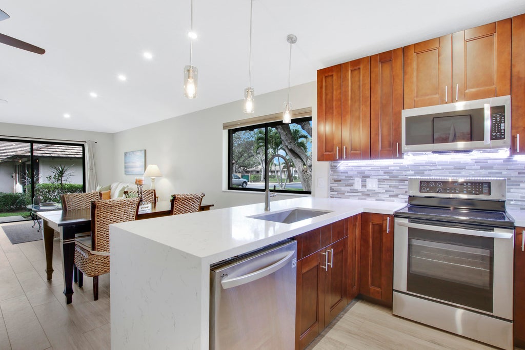 Welcome to Par & Away Cottage! Enjoy sunsets over the golf course from this pristine cottage in the heart of PGA National. Fully furnished & equipped, pack a suitcase & feel right at home. The master Bedroom offers a king-sized bed, flat screen tv & ensuite bathroom w/ soaking tub. The guest bedroom offers two full sized beds, & tv. Walk-in shower in the guest bathroom. The renovated kitchen and bathrooms are beautifully tiled and appointed. Patio is equipped with grill. Kitchen is fully stocked with all you'll need to feel right at home. This property accommodates 6 guests in total. We've taken great pride in providing clean, fresh accommodations. Linens, towels, cookware, dinnerware, WIFI and cable provided. Not available Jan & Feb. Still available March 2026 $12,00Conveniently located near the community pool and just minutes from the newly renovated PGA Resort and Spa. You'll also be only a short drive to the area's amazing beaches, endless dining options, shopping, golf, theater and much more.