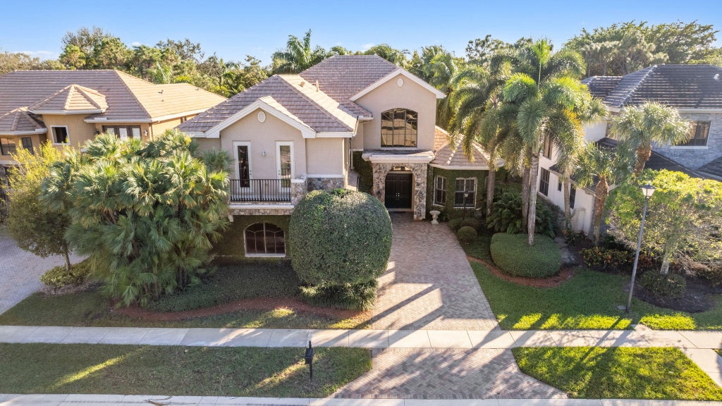 An exceptional estate home located within the prestigious guard gated community of Versailles. The ultimate in curb appeal, this home boasts soaring 22ft ceilings that frame FABULOUS views of the lush, tropical, PRIVATE backyard. The floorplan has spacious living areas, a formal dining room, an elegant office, and a downstairs guest suite. This chef's kitchen is a DREAM which features granite slab countertops, upgraded cabinetry, stainless steel appliances, gas cooktop and double ovens. Take the elegant staircase to the stunning Primary Suite which is enhanced by a custom walk-in closet, dual vanities, and separate shower and tub. Interior upgrades include crown moldings throughout, wood flooring in select areas, French doors and accordion shutters for added security. The resort style backyard is a tropical paradise, and a truly private oasis. Ideal for entertaining, there is an extended patio, a covered lanai and a custom outdoor kitchen with a built-in gas grill. There is ALSO plenty of room for a pool. Versailles's community features are simply outstanding, including a beautiful, sparkling swimming pool, pergolas, covered seating areas, children's playground, lighted tennis and basketball courts and a fitness center. The HOA dues cover highspeed internet, common area and full yard servicing, and basic cable. A+ rated schools are nearby, along with high end grocery shopping and equestrian facilities. This is the community to enjoy luxury living!