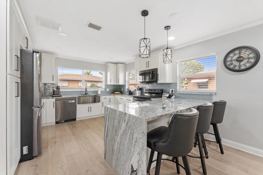 BEAUTIFUL TOTALLY UPDATED 2/2 SPACIOUS UNATTACHED VILLA WITH SOLAR PANELS, HURICANE WINDOWS, WIDE SCREENED FLORIDA ROOM OVERLOOKING A LARGE GREEN AREA AND POOL, UPDATED KITCHEN INCLUDES HI QUALITY APPLIANCES AND TANKLESS WATER HEATER, PRETTY LAMINATE FLOORS, HURRICANE SLIDING DOORS TO THE PATIO, PRIVATE LAUNDRY ROOM, ROOF 2014, NEW A/C 2025, SHORT RIDE TO DOWNTOWN DELRAY AND OCEAN, A MUST SEE.